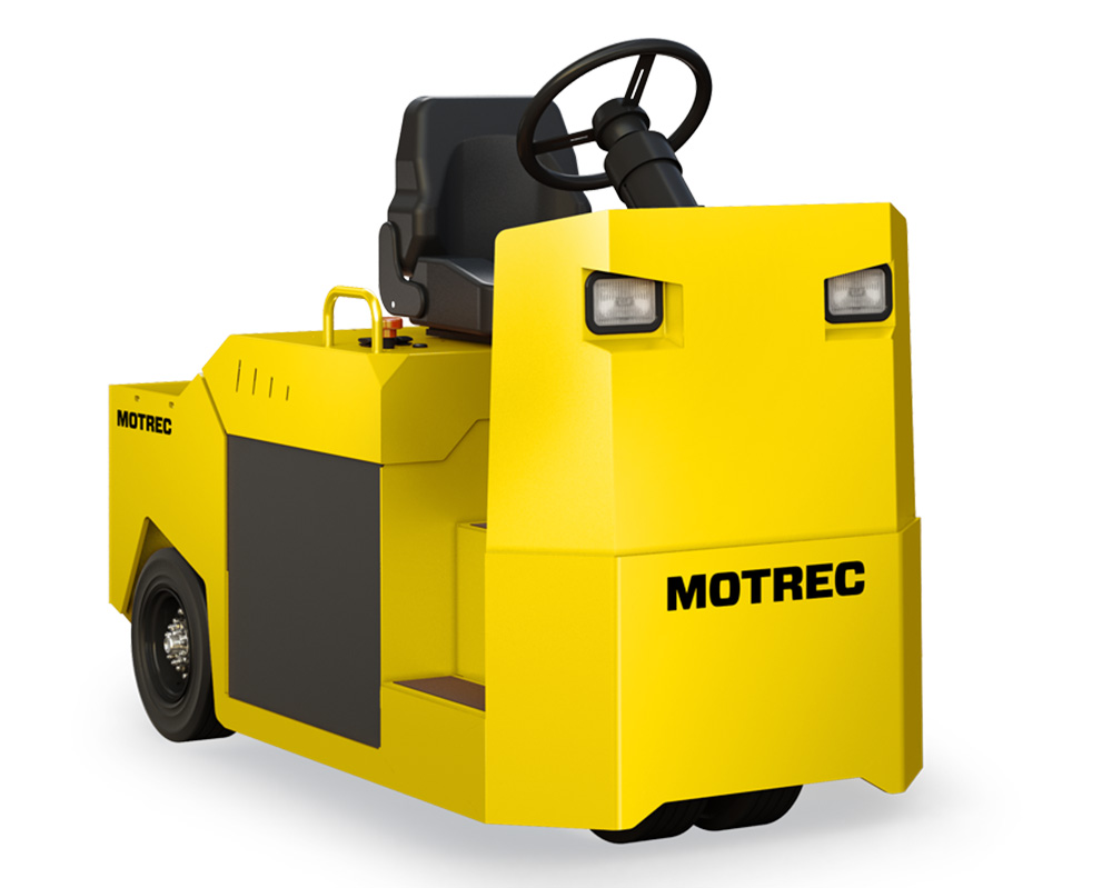 The Motrec MT-340 Tow Tractor set a new industry benchmark. It’s capable of up to 20,000-lb. towing capacity, sports a leaf spring suspension and shock absorbers, flat-free solid softy tires, inching control, protected electrical components and much more – all standard. Power and performance are delivered through a brushless AC powertrain with efficient direct-drive differential, hefty 1″ rear-end plate and large drum brakes.