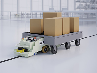 Autonomous guided vehicles (AGVs) are programmed to carry out various logistic and material handling tasks. AGVs operate on guided pathways using guide wire, magnetic tape, and QR codes. are usually designed to carry heavy loads. LiDAR, RFID, and Vision technology allow them to detect and stop to avoid collision with obstacles that cross its path.